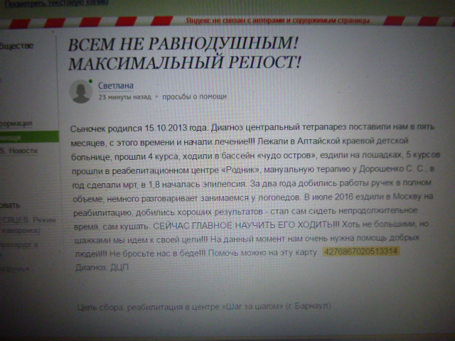 Она на кого только деньги уже не собирала и на мальчика и на девочку. Владелец карты Храмцова Наталья Геннадьевна. Постоянно чужие документы выкладывает!