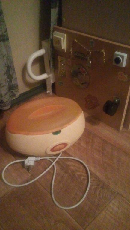 Вообще это скорее для взрослых, по крайней мере, я у детей не знаю как применять.Принцип такой: лампа растапливает парафин(его видно на втором фото застывший), макается кисть или стопа на секунду и вынимается, парафин тут же застывает на воздухе, далее следует надеть перчатки или теплые носки и держать минут десять. Ноги и руки сразу мягкие становятся, часто эта услуга в маникюрных салонах. С ребенком, наверное, можно, но нужно подобрать парафин подходящий и очень осторожно погружать, там можно при неаккуратности обжечься.