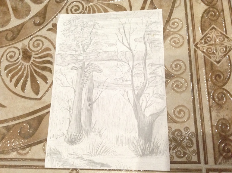 Первый рисунок карандашом. Это я нарисовала на первом занятии, как бы показывала что умею и как вижу. Срисовывала конечно с какой то картинки, которую дали.