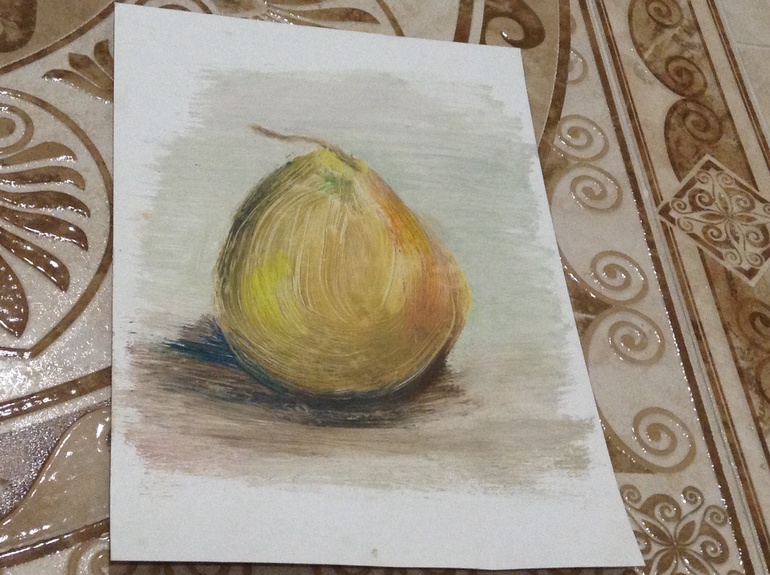 На втором занятии я рисовала грушу, маслом, не нравится она мне конечно. Но меня все успокаивают, что это только второй урок и через год будет лучше. А некоторые вспоминают как рисовали виноград и хохочут. Ожидаю что будет очень весело)))