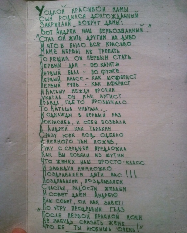 А стихотворение это Бася написал нам в качестве поздравления на свадьбу. Спасибо за память.