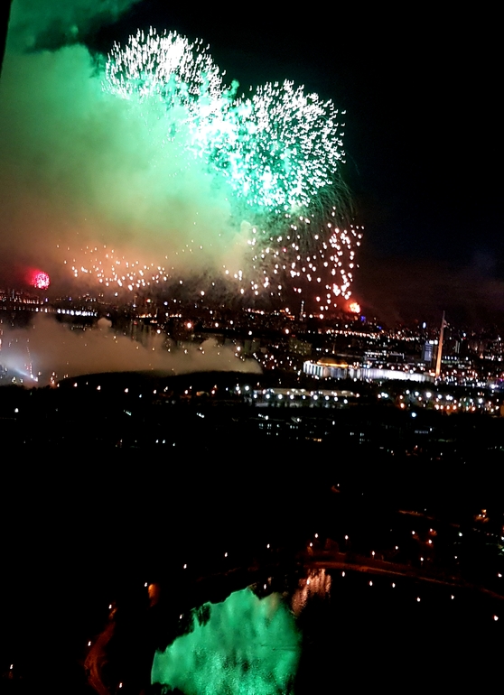 красиво! А у нас было пасмурно и половина огоньков сверкало в облаках))) мы видели только розовые, желтые тучи))) погода подпортила, в прошлом году было очень красиво