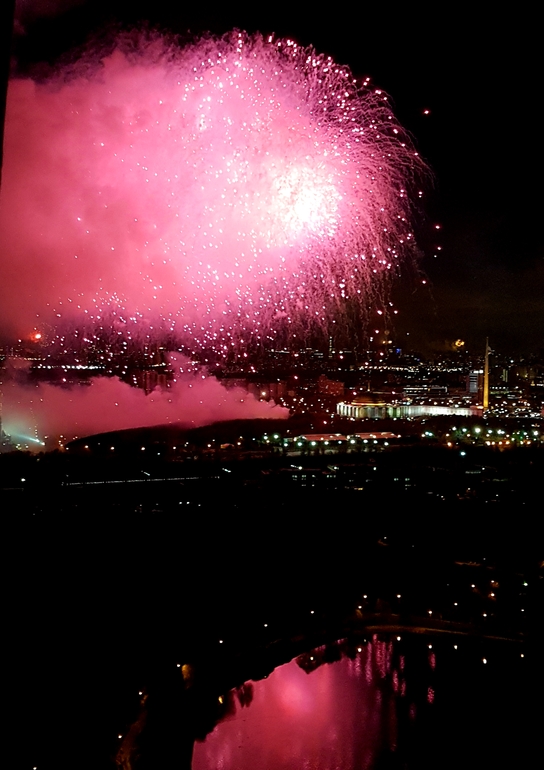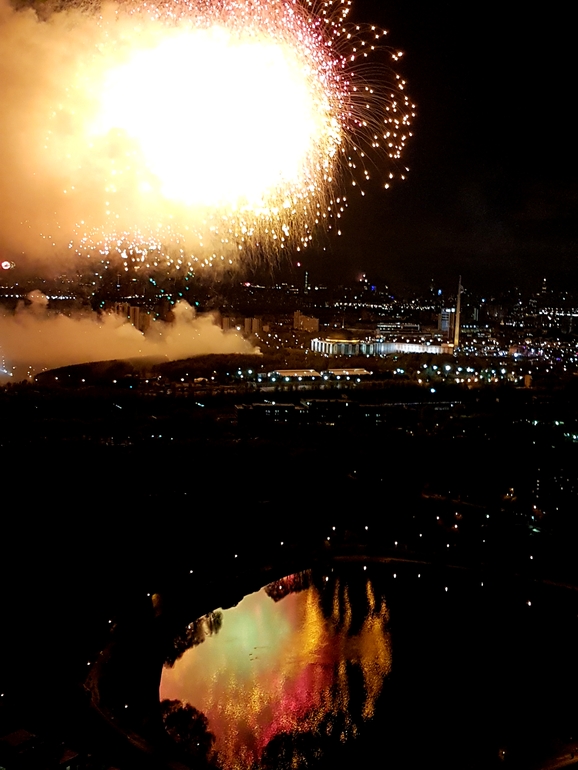 Красотищаааа! Фото конечно не передают всей полноты красок и впечатлений. Внизу отражение в пруду, ощущение, что находишься между салютами