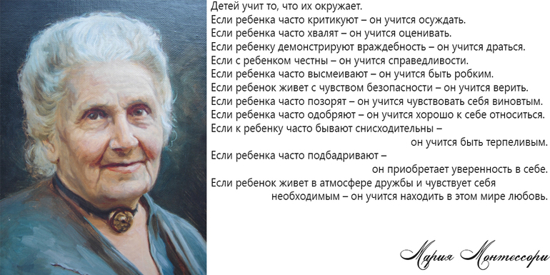 Ага, сама Монтессори родила и своего единственного ребенка отдала в приемную семью, тк он мешал ей делать карьеру в педагогике)))) очень хорошо воспитывать чужих