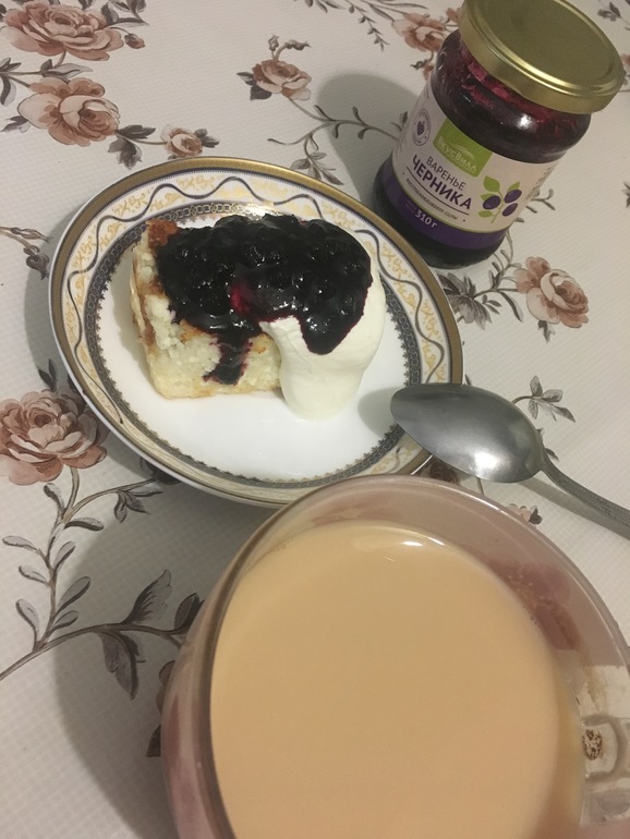 Ну ничего странного на первый взгляд, но здесь же пол банки сметаны, и хрензнаетсколько варенья черничного любимого....