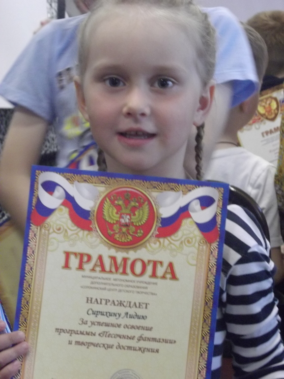 Нам вручили альбом со всеми работами. На следующий год идём на рисование + песок.