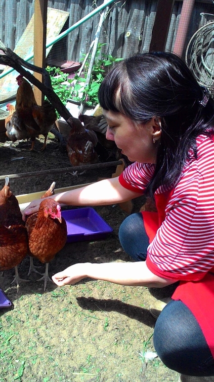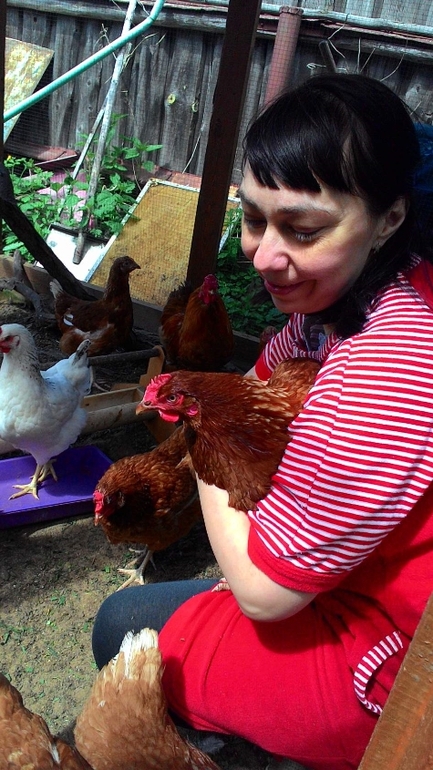 Домострой многодетной семьи (дом и уют)Уже месяц младшие дети на даче с бабушкой. Мне дали возможность работать в полную силу и взять передышку)) На выходные с мужем летим по трассе к ним. Катя освоилась и ни на секунду не отпускает от себя бабушку, ровно так, как была со мной, моей тенью день и ночь. Этот ребёнок ничего не боится, ходит кормить кур, бабушка даёт ей поднос с травой и Катя его несёт! Она заходит в загон, пытается кормить кур, гладит их и куры это ей позволяют, я была удивлена, как она не боится червей, просит, чтобы ей их дали и бежит дать их курочкам. Куры подросли, начали нестись уже 11, а всего их 20. Петух добрый, джентельмен)), ждёт, пока дамы не наедятся, только потом сам подходит. Это так трогательно. Муж купил одну куру крапчатую, её все обижали, было так жалко её, но тут она начала нести яйца и от неё отстали, мало того, она всё время увивиается возле петуха, может в знак благодарности.