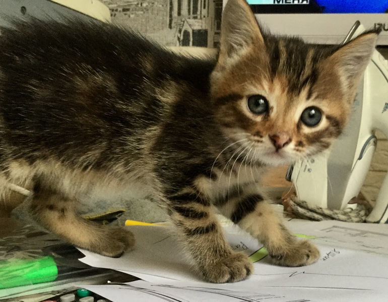Игорь вызвал, но скорая старика не забрала. Фельдшер сказала, что бомжей не забираем и ещё обматерила их. На замечание Игоря, дескать, что же вы ругаетесь практически на пороге храма (дело было рядом с церковью), фельдшер ответила, что она атеистка. И скорая уехала! Игорь позвонил и сказал, что не может бросить пожилого человека на улице. Пришлось отцу бросать дела и ехать решать вопрос. Прихватил немного еды и денег. И отвез старика к нам на стройку переночевать. Оказалось, пожилого человека дочь выгнала из квартиры (возможно он пил). Причём у человека по его словам было жильё и неплохая пенсия. Удивительно, что Игорь сидел и выслушивал его, по словам мужа от того ощутимо неприятно пахло. Вчера Игорь притащил домой котёнка. Вот такая красавица теперь живет у нас