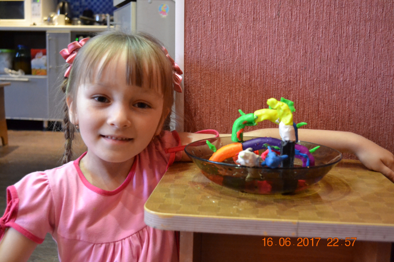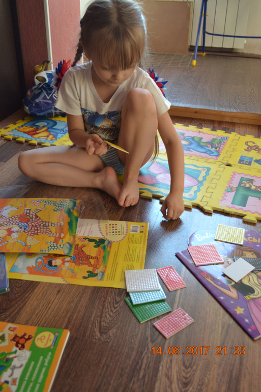 Алиса довольная.В первый вечер после сада делала мозаику,во второй вместе с папой фреску,вчера сделала плавающих дельфинов.Сегодня с утра рисует фломастерами.Один блокнот попросила спрятать для поездки на Байкал