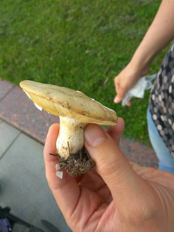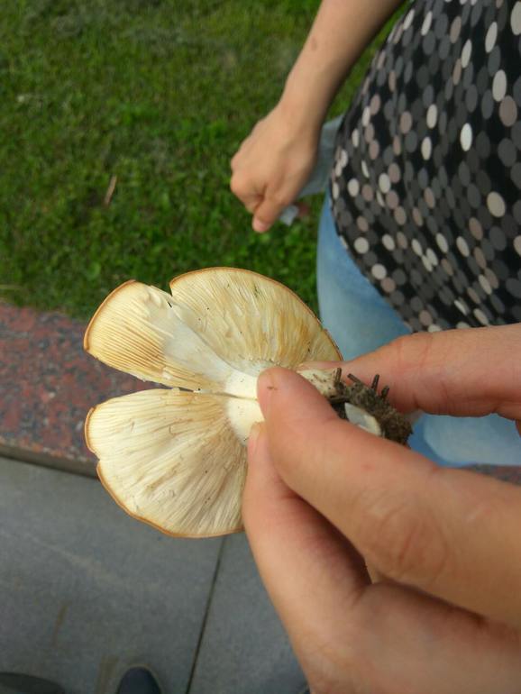 Похоже на сыроежку, но я всегда беру только грибы у которых под шлябкой не гармошка, губка - типа как у белых и подберезовиков. Исключение опята - но их я знаю хорошо.
