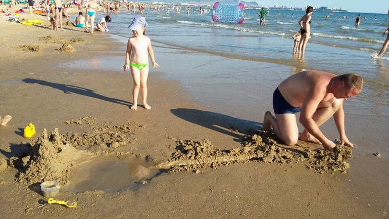 Анапа песок, дальше галька. Море в Анапе может цвести.