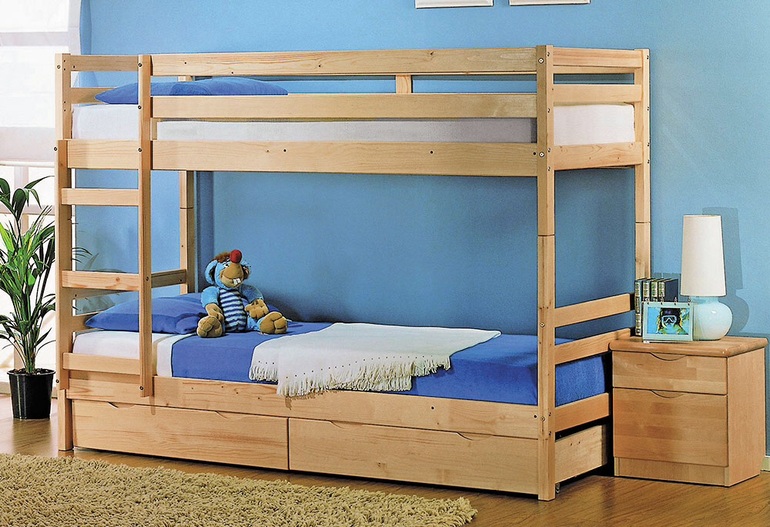 У моих ребят вот такая. Массив. Старший спит на втором этаже . С 5 лет и 1,5 лет соответственно. Единственное, что скрутили лестницу, так как мелкий научился залезать и муж на первый этаж сделал борт съёмный на сон(мелкий спокойно через него перелазить, когда не спит)