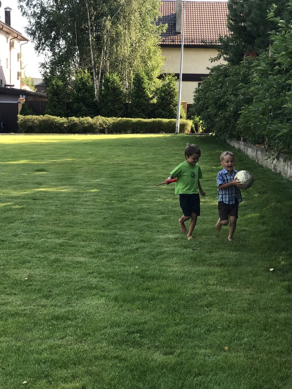Он очень тянется за Пашей. Мы устраиваем нашу жизнь в Москве и ребята пробовали разные виды спорта.