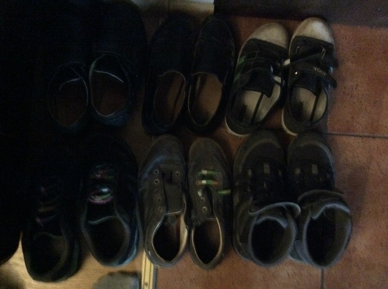 обувь не рванная, может не очень чистая, у школьных ботинок потерты мысы, можно кремом замазать.