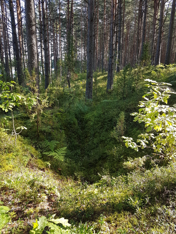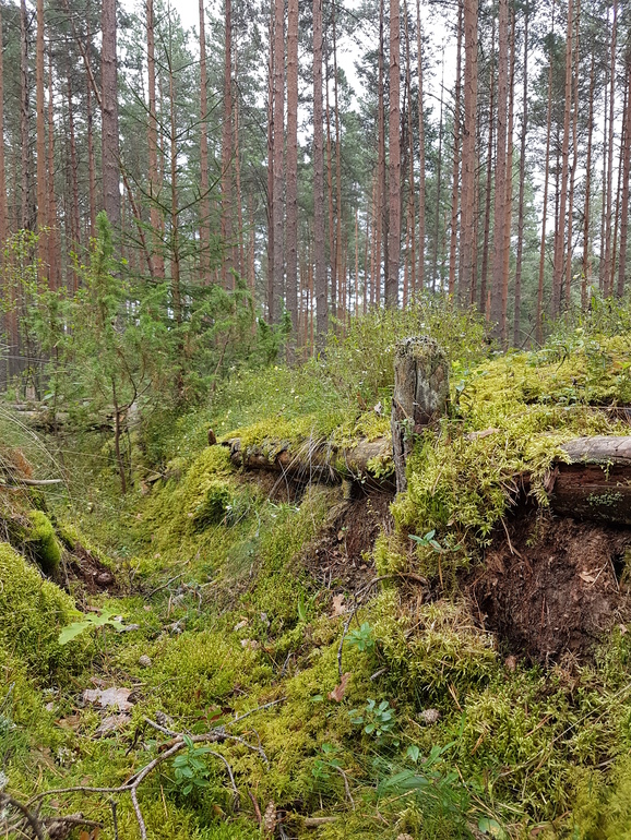 Ожидаешь встретить избушку на курьих ножках, но находишь другую историю. Окопы (на фото часть укрепления), траншеи, воронки от снарядов. Всё уже заросло, жизнь победила.