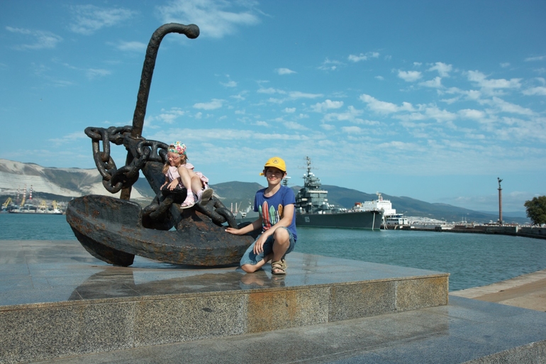 Доехали отлично, виды потрясающие! В самом Новороссийске дети, увидев Макдональдс, закричали, как они голодны, и дали команду водителю срочно тормозить. Все перекусили и решили прям с этого места пешком идти до набережной. Это была не лучшая идея, как мы уже поняли потом. Было жарко, полуденное солнце палило нещадно. Я несла Артура, муж попеременно нес девочек. Советую, если будете с детьми, то подбирайтесь поближе к набережной, там обычно есть места для парковки.