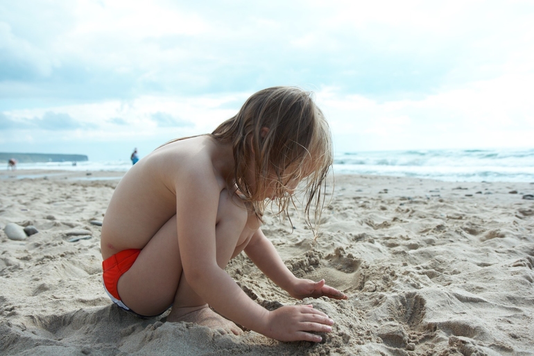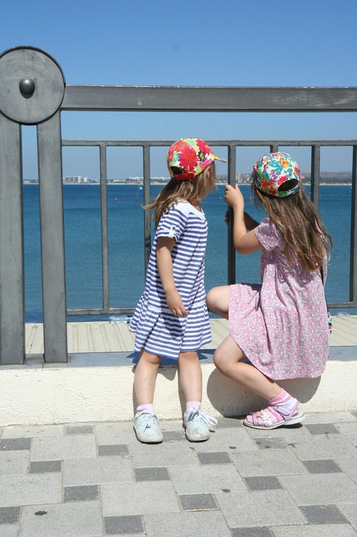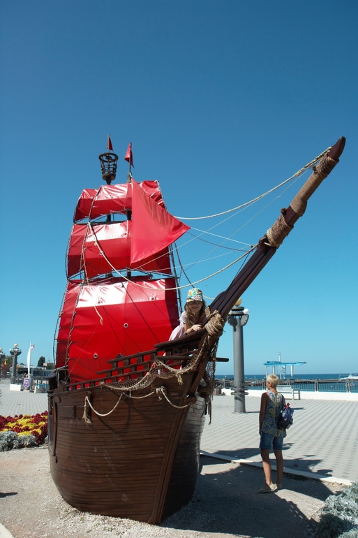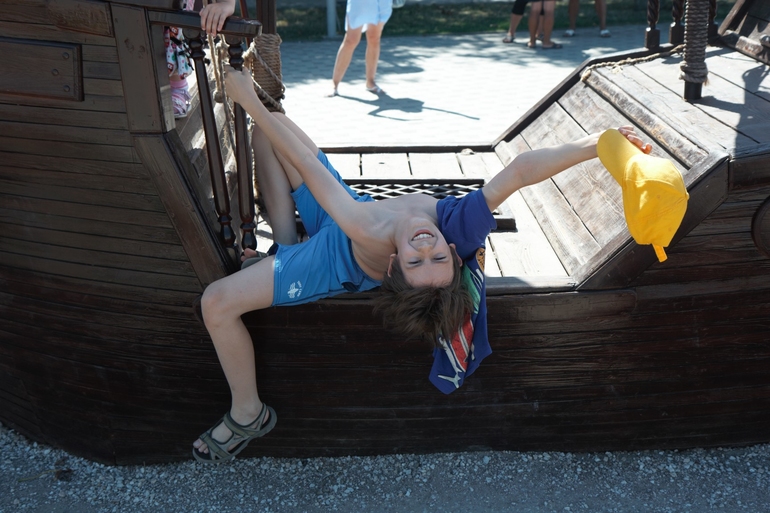 Пока спускаемся к пляжу, дети хаотично бегают от корабля на набережной...