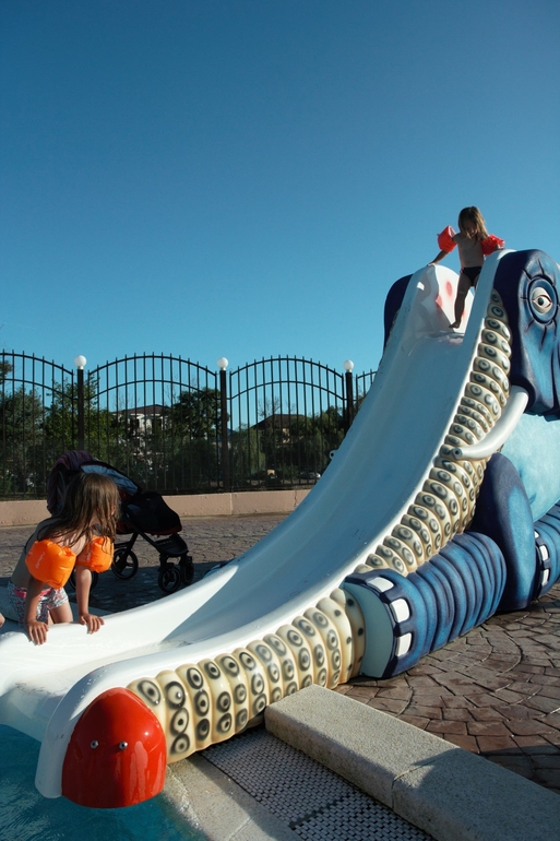 Сколько можно оставаться на одном месте?! Так и тюленем можно стать! И мы едем развлечь детей в аквапарк в Джубгу. За несколько дней проведенных в Краснодарском крае я научилась говорить это слово правильно. А то всё норовила сказать "джугба". Вот вы знаете, значение этого слова? Когда слово - это не просто слово, а имеет смысл, то и запомнить легче. По одной из версий перевода с адыгейского, Джубга - это «местность, где свободно разгуливает ветер». Впрочем, особых ветров мы тут не заметили...