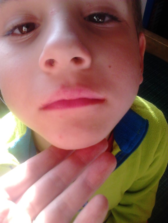 В пятницу у Сёмы поднялась температура 39, сбивала парацетамолом. В субботу пожаловался на горло, к вечеру обсыпало кисти рук и стопы. Зудело так, что плакал. на сегодняшний день пятна на руках почти слились, но зуд меньше. Зато прыщи изо рта уже распространяются на лицо. Губы уже обсыпало как герпес, только просто все губы вокруг!