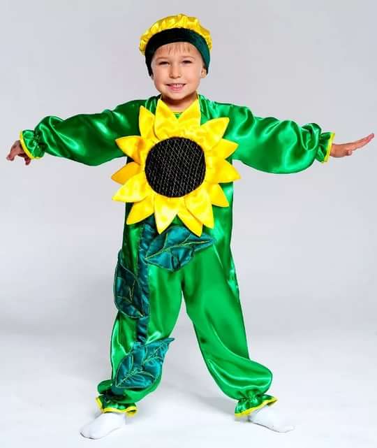 Вот примерно так можно сделать или из бумаги сделать на грудь солнышко и прицепить к коко-му нибудь желтому наряду, как подсолнук сделано.