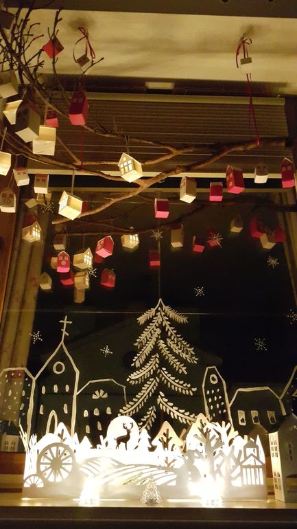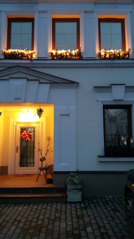 У меня соседка нашу лестничную площадку украсила. Было утро, когда фотографировала, поэтому немного темно