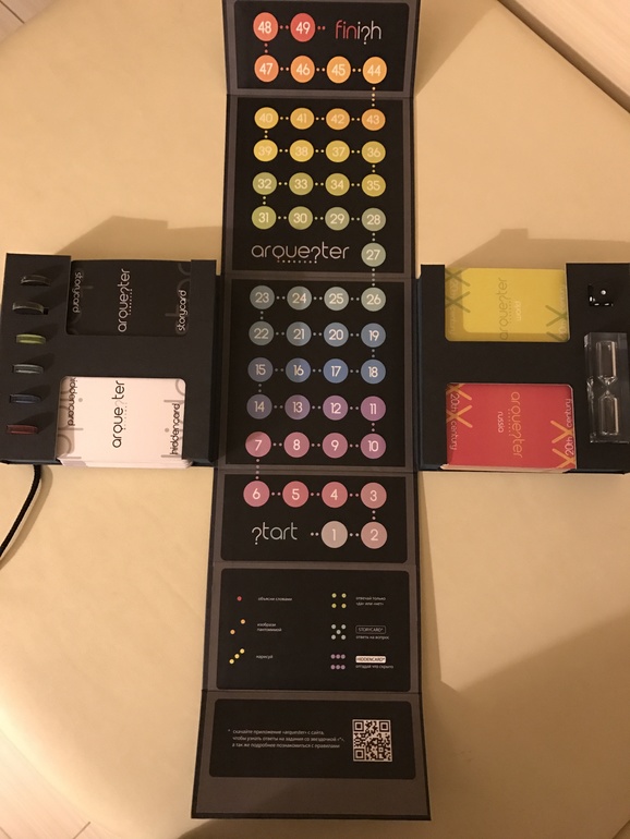 Она вся такая необычно- интересная . Кубик мы теперь бросаем только по телефону , так же есть ответы, которые нужно открыть, нажав разноцветные кнопочки и все вместе это делает Ее очень притягательной и для малышей.