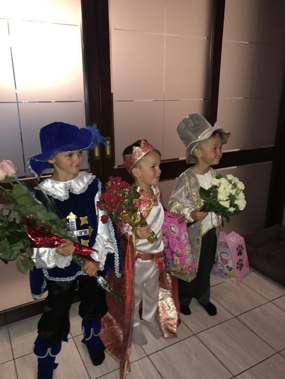 Мы не ходим на ёлки в Москве, очень много у соседей новогодних программ. На Кирюше костюм мушкетера.