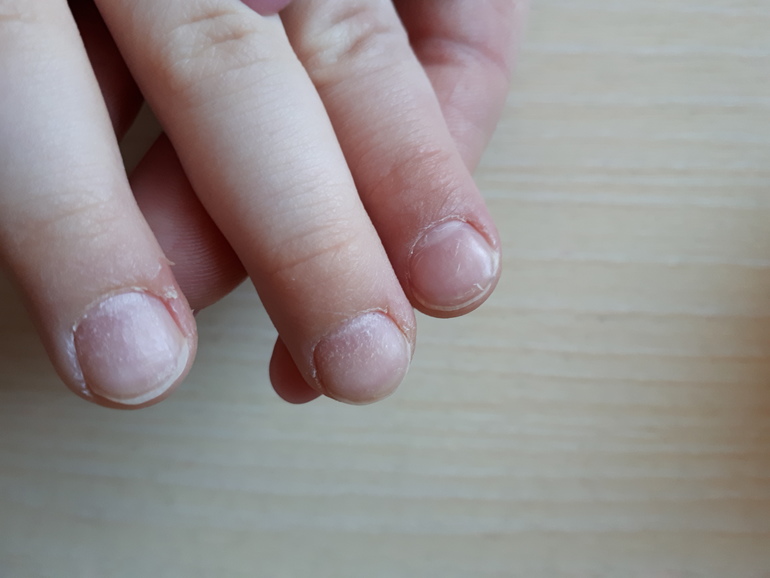 Здравствуйте. Ногти пока в том же состоянии. Пьем витамины. Были у дерматолога,назначила лечение димексидом,сентамициновой мазью,аевит,витрум.Улучшений никак. Пошли к гастроэнтерологу. Направила сдать анализ кала ИФА на лямблии. Старший сын тоже сдавал,так как у него 1 ноготь тоже начал менять структуру. У старшего анализ пришел положительный,у младшего(с кого все началось)отрицательно. Врач сказала если хотя бы у одного члена семьи есть лямблии,то лечиться нужно всем. Прошли курс лечения долгий и недешевый. Повторный анализ на лямблии пока не сдавали,но и ногти у ребенка такие же.(