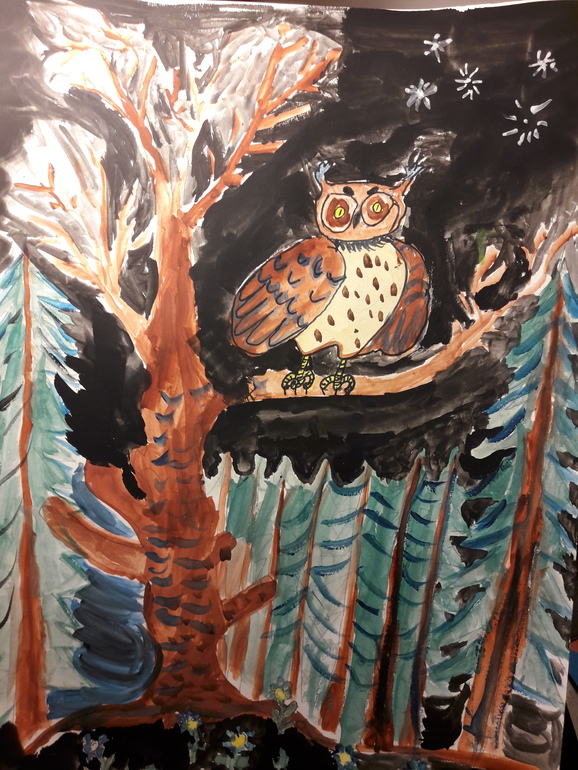 Школа и детский сад, образование детейЗавтра у Васи олимпиада по ИЗО в классе. Задания - темы прислали заранее. На редкость дибильные. К примеру: нарисуй себя в костюме животного! Мы в итоге выбрали: театральная декорация сказочный лес. Потренировался вечером. Лес вышел страшноватым).