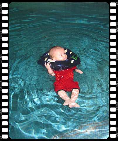 Кирюше- неделя . Первая проба водички . А если присмотреться, то на фото видна та самая беседка, которую я показывала выше.