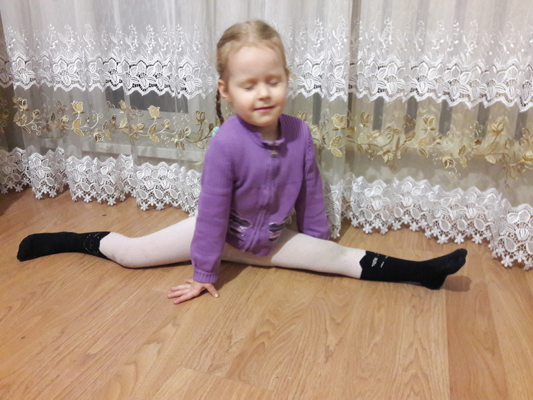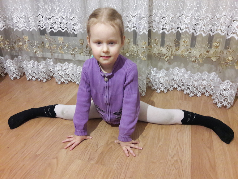 фотограф из меня не очень) но вот что умеет уже, шпагат продольный и поперечный, коробочку, на руках может стоять сидя.. и берпи прыгает))