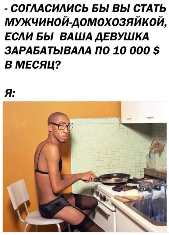 Отношения в многодетной семьеОбратился мужчина к Богу: - Боже! Поменяй нас с женой местами , она сидит дома, ничего не делает, я хочу на её место. Бог выполнил его просьбу, на следующее утро просыпается муж на месте жены , подскочил, завтрак приготовил, старшенького в школу собрал, младшенького в садик отвел,потом по магазинам, потом обед варить, только собрался отдохнуть - тут старшенького со школы забирать,младшенького из садика , потом уроки сделали, тут ужин готовить, поели, посуду помыл , все убрал , детей помыл , уложил , только лег отдохнуть ,а жена ему: - А супружеский долг...