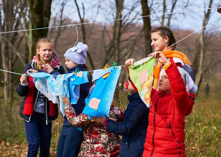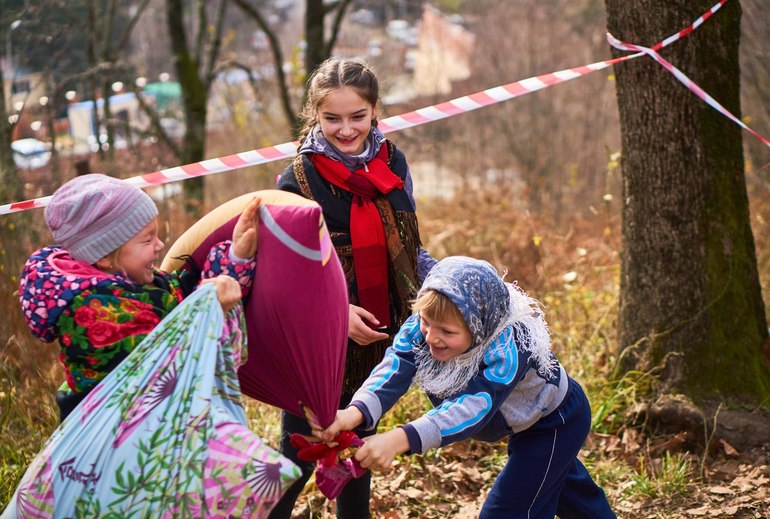 Это наш местный школьный туристический кружок, все сделано руками детей и их родителями. У дочки был конкурс - бои подушками. Я сшила чехол для подушки. Конкурсы придумывают сами дети и сами их проводят.