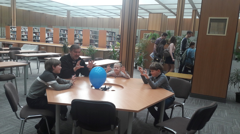 Шлялись потом, бегали по коридорам, заходили в открытые лаборатории, где нас на полном серьезе приглашали все осмотреть. Еще в фойе девушка замораживала кукурузу в жидком азоте, и угощала всех желающих, мы конечно тоже очень желали), так прикольно) холод, тающий пузырьками на языке и пар через ноздри, как дым у змея горыныча), потом лили азот прямо на пол, и смотрели, как он собирается в шарики и катится и испаряется). В общем, дети и уходить особо не хотели, но очень проголодались)
