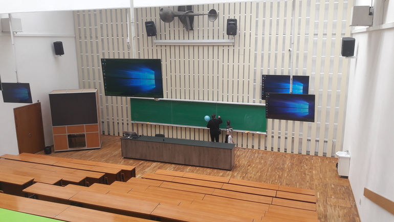 Лекционная аудитория. Папа рассказывал, как профессор 8 марта там прятался под столом, чтобы поздравить студенток)))