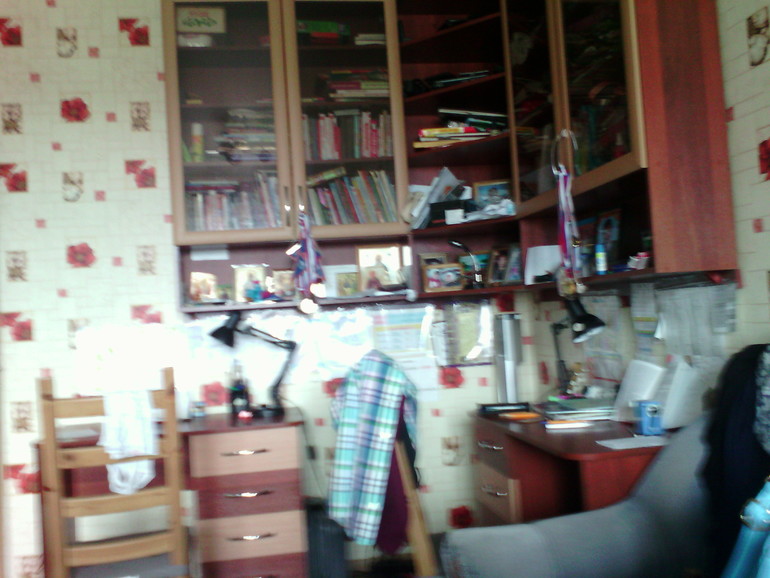 Причём, в нашей с мужем комнате рабочая зона для парней сделана.. У них чисто спальня одна на двоих..места для столов там нет,маленькая комната..