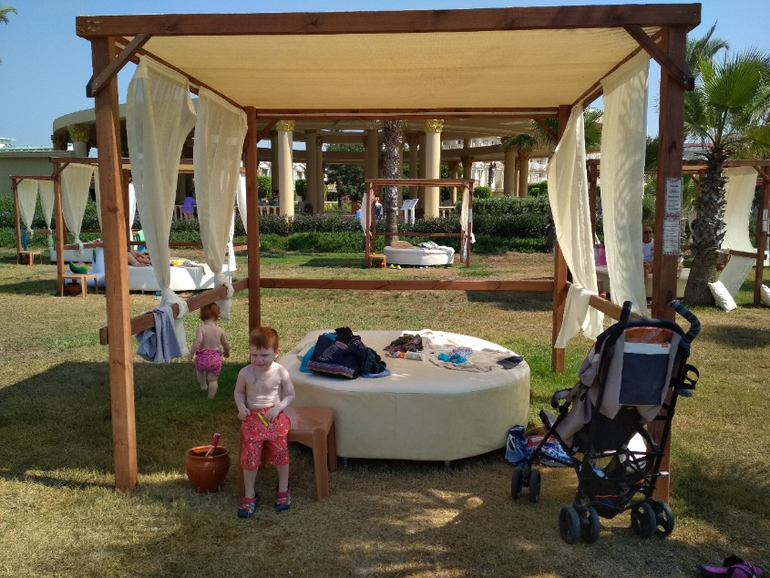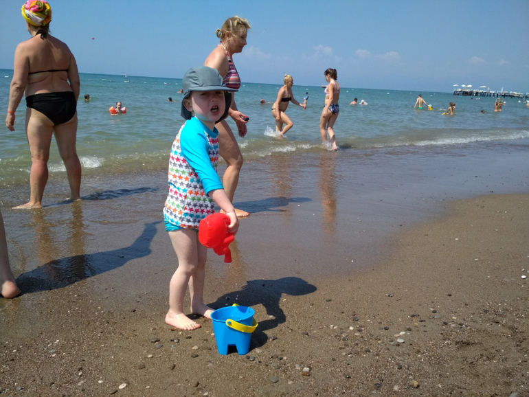 Отдохнуть нам,родителям, в классическом смысле слова, не удалось с малышами..но в этом году уже было полегче,чем в прошлом-хотя бы за столом сидели и поесть можно было в первые 15 минут :)) мы сначали им приносили тарелки с едой и,пока набирали себе, они ели,смотрели мультик на телефоне..к моменту,когда мы усаживались кушать,дети сыти и готовы бежать :)) поэтому мы ели каждый раз,без исключения, в оперативном режиме.