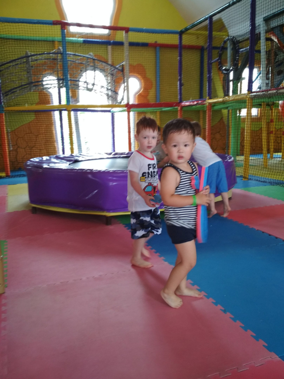 С Сёмой иначе:он уже не бежит,выпучив глаза,куда хочется(так было в прошлом году),но такой нытик!! Как муж :)) Постоянно ноет,что что-то не так,чуть что-в истерику и слезы, упрямый и требует свое..с ним морально устаешь очнеь и,как сказал муж, он первый кандидат на то,чтобы остаться на след.год с бабушками,хотя и старше сестры.И Сёма не любит скопления людей,дискотеки детские,конкурсы-это не для него. Вот чаами бегать в игровой комнате-это да!