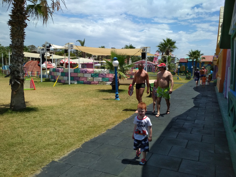 У нас был такой режим: утром в 8-9 подъем,шли на завтрак,потом на виллу переодеваться, затем море до 11-30 и далее игровая комната.Потом обед и сон,выходили вечером в 16-30-17 ч. к бассейну с аквапарком..мы с дочей последние дни ходили и вечером к морю. Затем переодевались в сухое и ужин,гуляли после которого по горомной территории отеля,ходили в игровую детскую, на мини-дискотеку(Мира там особенно нажигала)..укладывались в 23 ч. обычно.