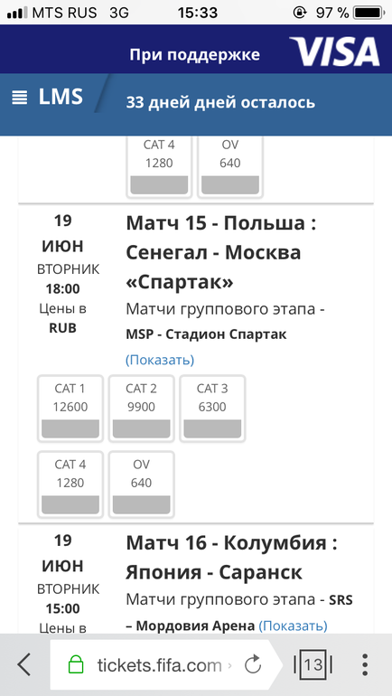 Вы написала, что ваша мечта сходить на футбол ... ну вот билеты купить не реально . Я каждую ночь сижу на сайте Фифа, где продают билеты. И их не получается купить... пытаешься положить в корзину- вводишь код- пишет ошибка . И так по 20 раз подряд . Это с мобильного . Может с компа можно. Днём билетов вообще нет на сайте. И платить надо картой Мир или виза, а не Мастеркард . Но ещё надеюсь купить на Стадион Спартак.