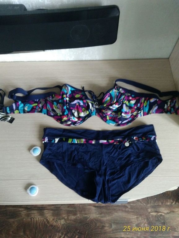 А цветной лиф 75 Н, трусы по европейской градации 38, американцы пишут медиум. Этот купальник использовался 1 сезон, состояние