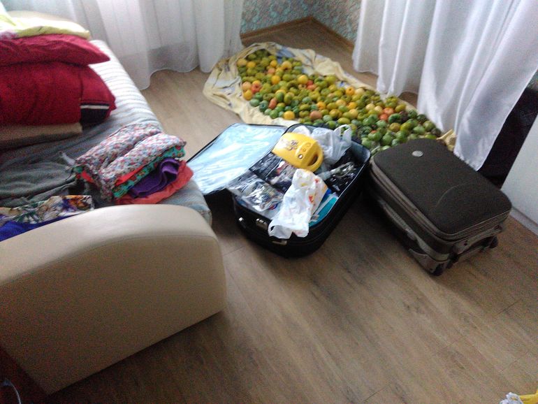 мы обратно всегда с едой)).я ж готовлю обеды,ужины,еды остается много,вот везем.еще что-то интересненькое куплю)).и,конечно,притащу фрукты разные)).