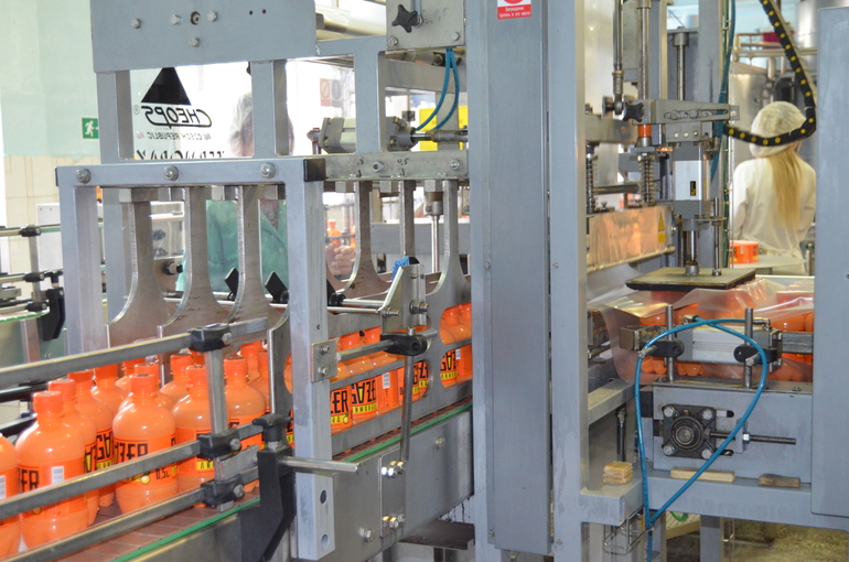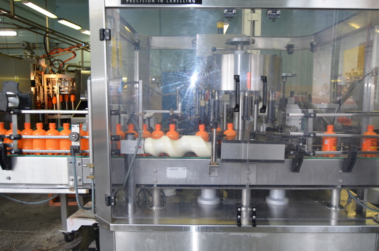Конвейерную ленту с едущими по ней бутылочками дети облепили как бабки собес - ну интересно же!