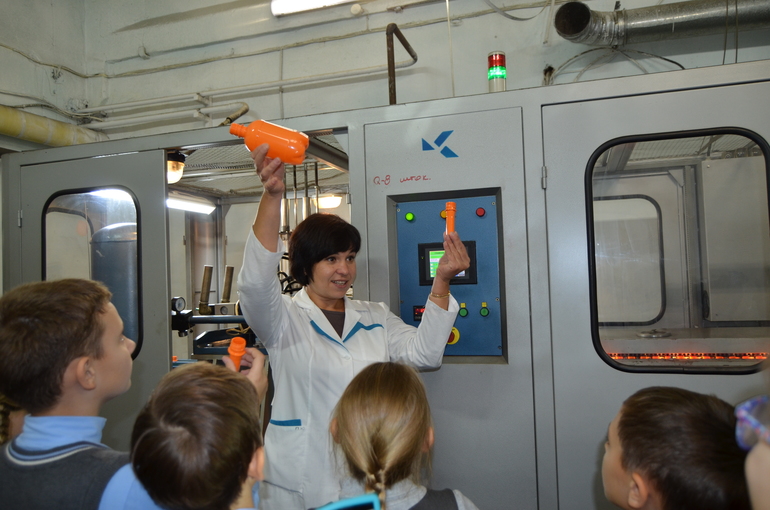 Затем, ко всеобщему ликованию, детушек повели прямо в цех, где они своими глазами увидели, как из маленьких колбочек паром надувают бутылки. А уж когда всем страждущим раздали по колбочке, восторг у детей был прям как у нас в 90-е, когда находили в жвачке новый вкладыш «Love is...»