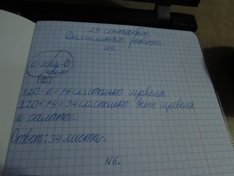 Решаем задачи по математике в уме за полминуты. Записываем в тетради оочень долго. К оформлению предъявляются большие требования, чуть ли не больше, чем к правильности самого решения. Юля понимает, но объяснить не может. Мы с мужем логики не видим. Зачем писать какие-то овальные схемы, когда можно решить с иксом?