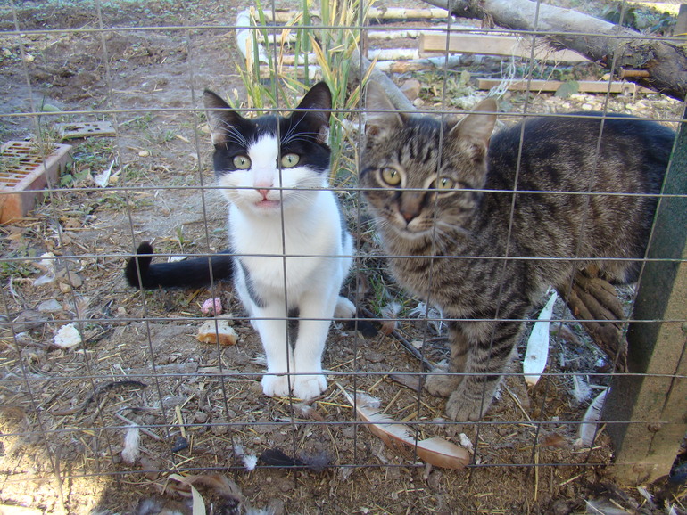 Но как только мы приезжаем, выпускаем их гулять по всему участку.Наши кошки и собаки их не трогают.
