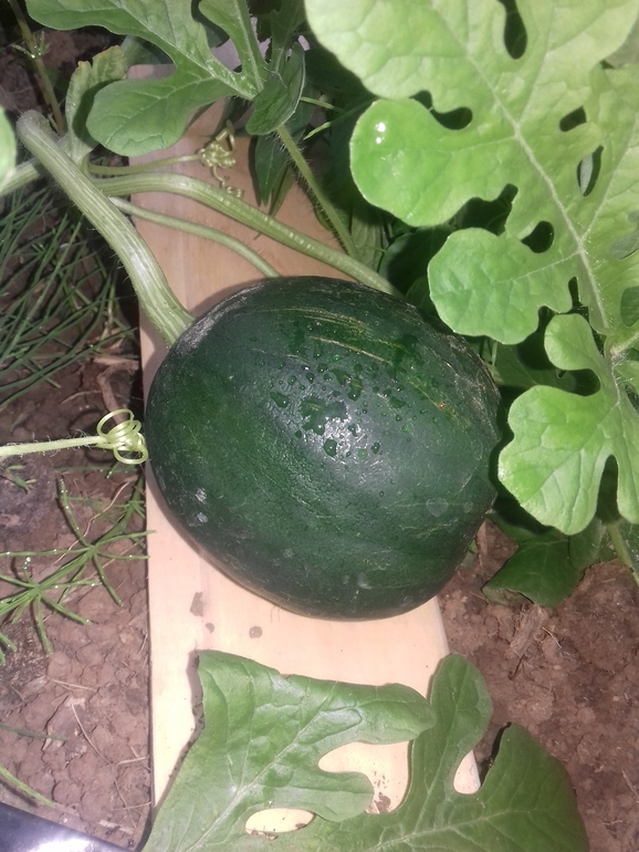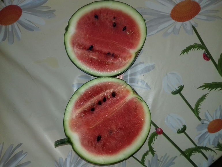 Итак, арбузик у нас вызрел всего один.Получился сочным и сладким, не сахарным конечно, но слопали за минуту.