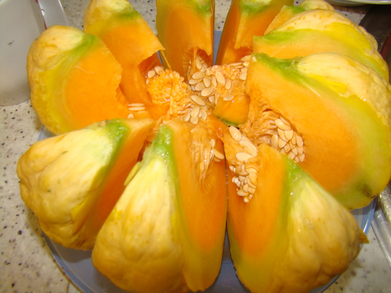 А вот дыни...дыни были просто обалденные. Очень сладкие и очень ароматные, запах созревшей дыни стоял даже за пределами теплицы.