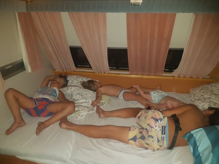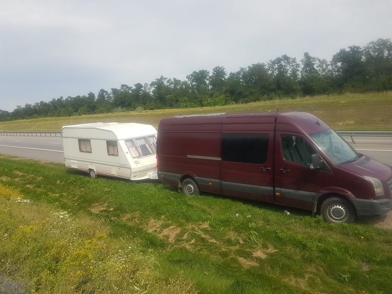 В итоге выехали мы в 4 утра в воскресенье, наш автопоезд получился длиной более 14 метров, сказать что мы привлекали внимание это ни чего не сказать, причем глаза у людей округлялись когда из машины высыпали дети и еще я с малышом. Доехали мы быстро, хотя муж не гнал, мост проехали ночью часа в 2, да не видно ничего было, но зато мы не стояли ни где, дорога была пуста ( хотя днем люди ехали по 5 часов). На месте мы были во вторник уже в обед. Это при том что мы заезжали на рыбалку под ростовом.