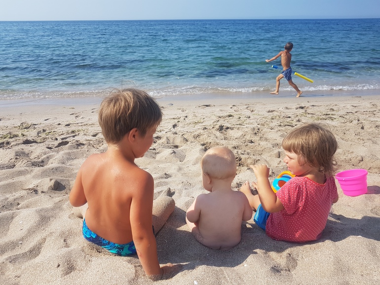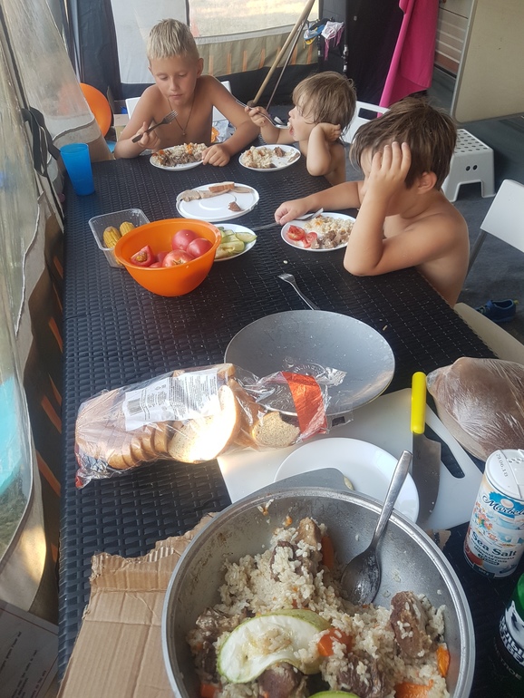Распаковывались два дня. В этот раз мы ехали упакованные под завязку, с диваном, лежаками, солнечными панелями, столами-стульями… в общем прям по полной. Море к нашему приезду было уже оч теплое ( хотя до этого неделю прям лед- течение какое то), но были медузы. Мы купались купались и купались, через неделю как то поднадоело, я все хотела на ЮБК, в итоге мы поехали посмотрели и вернулись обратно на западное побережье, поехали три дня побыли на Тарханкуте- там был фестиваль Крымская волна - экстрим видов спорта- нам понравилось. Потом опять вернулись на беляус- и тут случилось чудо - ушли медузы- ушли совсем и меня вштырило так- что переезжать уже ни куда не хотелось- все таки в музеи с малышами не походишь, ездили по западному побережью, любовались, купались, отдыхали… Да забыла написать что я брала свою коляску велоприцеп и мы в обед со старшим сыном каждый день ( ну практически каждый день) ездили по побережью и любовались видами, дышали этим теплосоленым воздухом, сколько там красивых безлюдных бухт… я когда присылала фото- мне не верили что это Крым, но это он, он разный: есть с толпами туристов, помпезный, грязный, шумный с кучей не понятных развлечений, а есть такой как у нас- тихий, семейный, пустынный, и нас от него плющило, мы целый месяц пробыли и было мало, хотелось еще еще и еще. Вопрос куда ехать в следующем году закрыт. В плане развлечений у нас уже образовалась своя компания- тех кто приезжает так же с кемперами с детьми. Днем море, вечером велики и игры, у взрослых посиделки с чаем а иногда и что то по горячее или похолоднее под шум прибоя, просмотр телика под открытым небом, нам было совсем не скучно., возвращаться не хотелось, но отпуск имеет свойства рано или поздно заканчиваться, теперь мы будем ждать следующего лета, что б опять получить те непередаваемые эмоции и энергию на весь следующий год). Спасибо всем кто дочитал, ну и фото. ( вставлю их все в конце). Их будет много